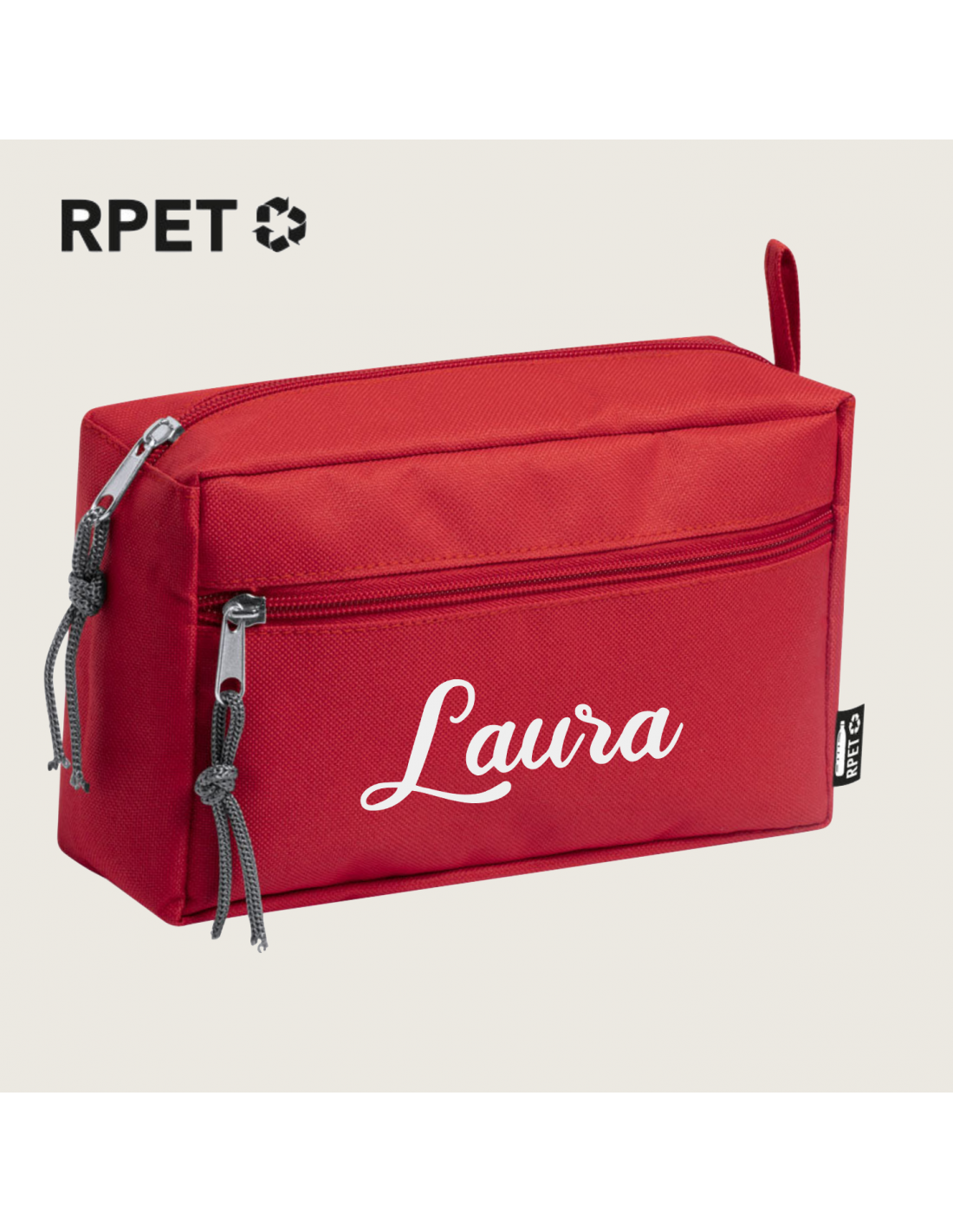 No olvide guardar su personalización para poder añadirla al carritoNeceser de línea nature en RPET, elaborado a partir de plástico reciclado, para así fomentar la reutilización de residuos plásticos y ayudar a la sostenibilidad del planeta. Compartimento principal y bolsillo frontal con cierre de cremallera, con cintas en tiradores para cómoda apertura. Asa de transporte a juego y distintivo RPET en etiqueta lateral. Disponible en variada gama de colores.