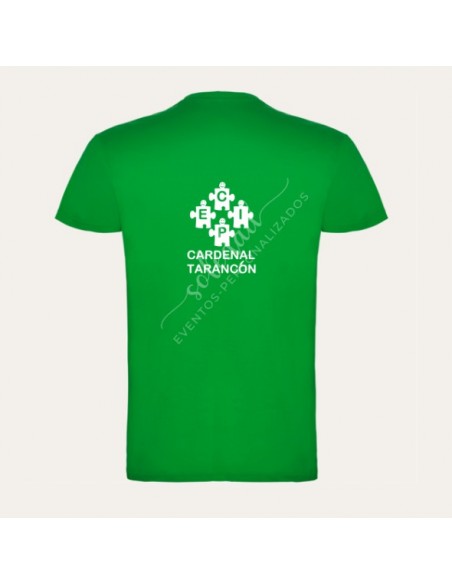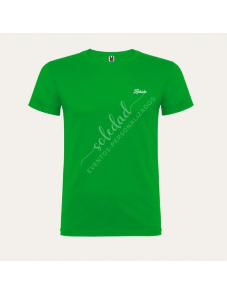 Camiseta de manga corta de cuello redondo doble con elastano, confeccionada en tejido tubular en tallas de adulto, y con costuras laterales en tallas de niño, con cubrecosturas reforzado en cuello.