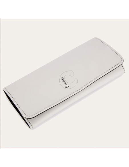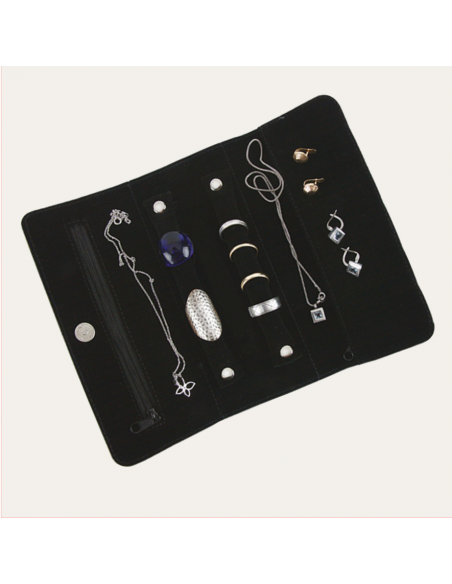 Estuche-joyero para llevar tus anillos, collares y pulseras gracias a sus prácticos compartimentos.Realizado en polipiel y forrado de antelina